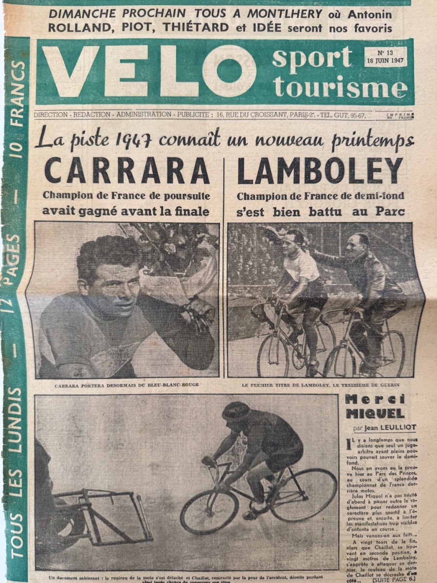 16 juin 1947 - Vélo sport Lamboley ( Héricourt . Haute Saone ) champion de France demi fond - Cyclisme