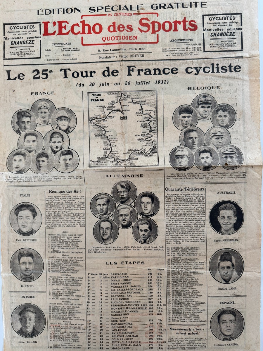 Edition gratuite l'Echo des Sports - Tour de France 1931