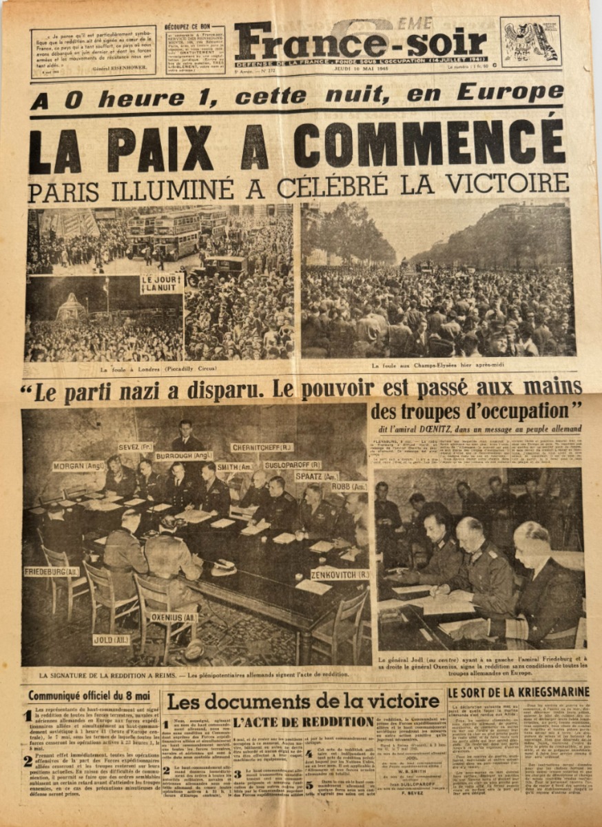Journal France soir 10 mai 1945 A 0 H 1 minute cette nuit La paix a commencé - Fin de la 2eme guerre mondiale - WW2