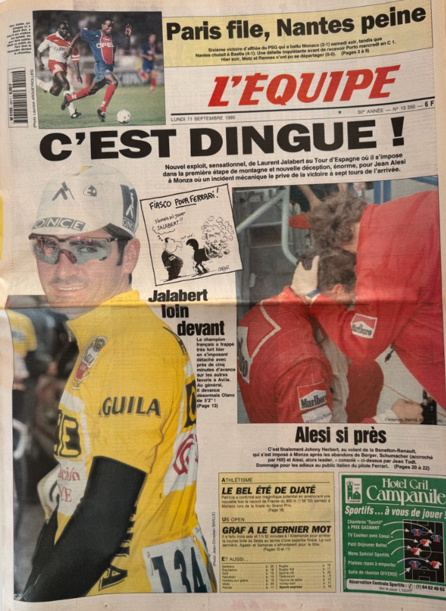 Journal l'équipe 11/09/1995 C'est dingue !!! Laurent Jalabert - Tour d'Espagne - Cyclisme