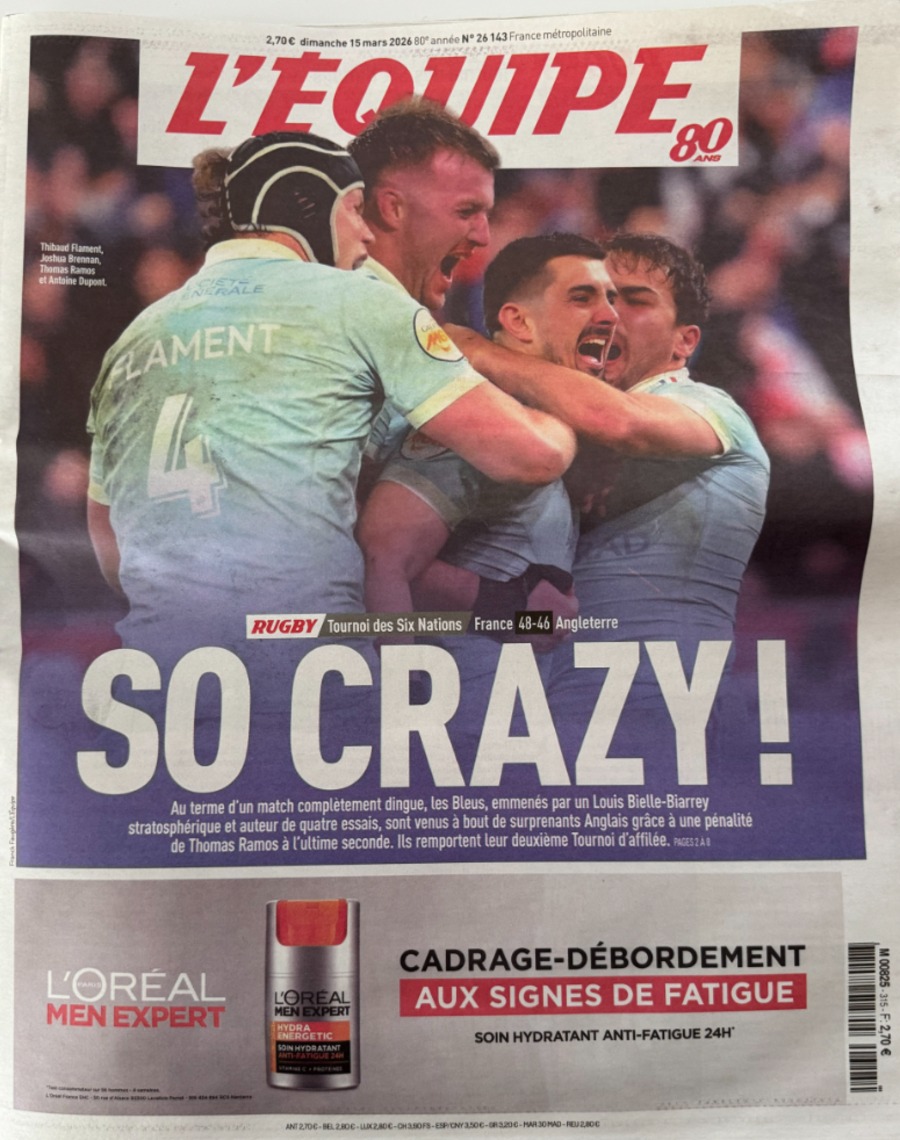 Journal l'équipe 15/03/2026 SO CRAZY !! Tournoi des 6 nations France / Angleterre - Rugby