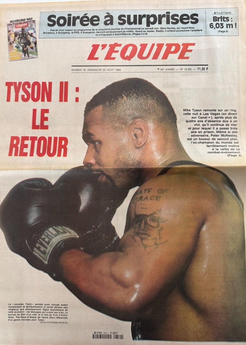 Journal l'équipe 19/08/1995 Tyson II le retour - Tyson / McNeeley en 89 secondes - Boxe
