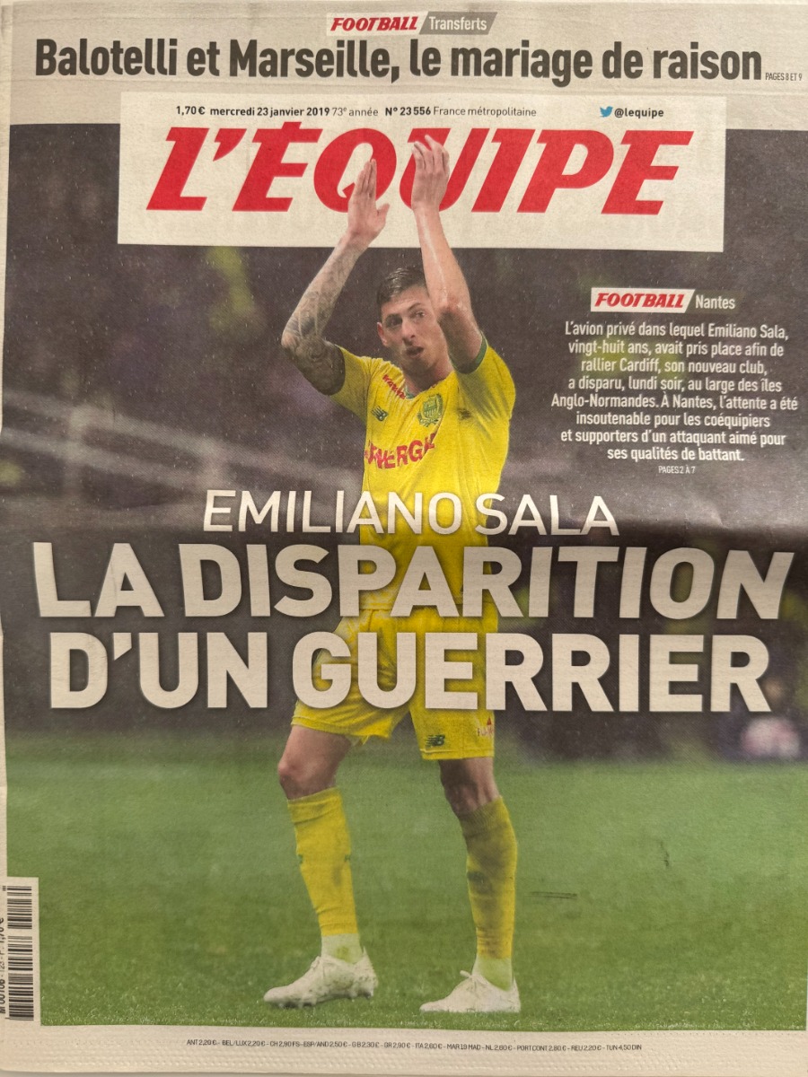 Journal l'équipe 23/01/2019 Emiliano Sala - La disparition - Football - FC Nantes