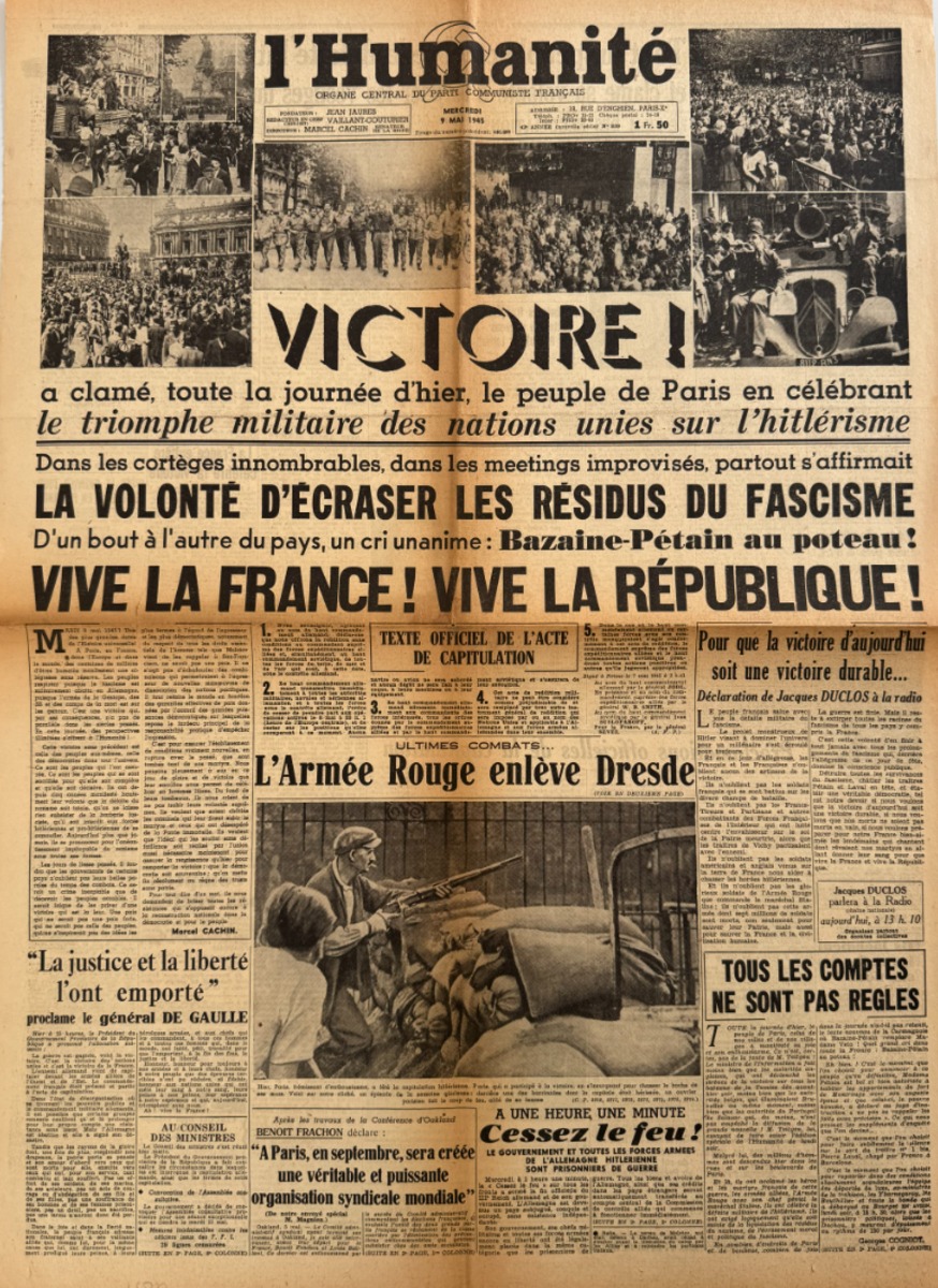 Journal l'Humanité Victoire !! Vive la France Vive la République - Fin de la 2eme guerre mondiale - WW2