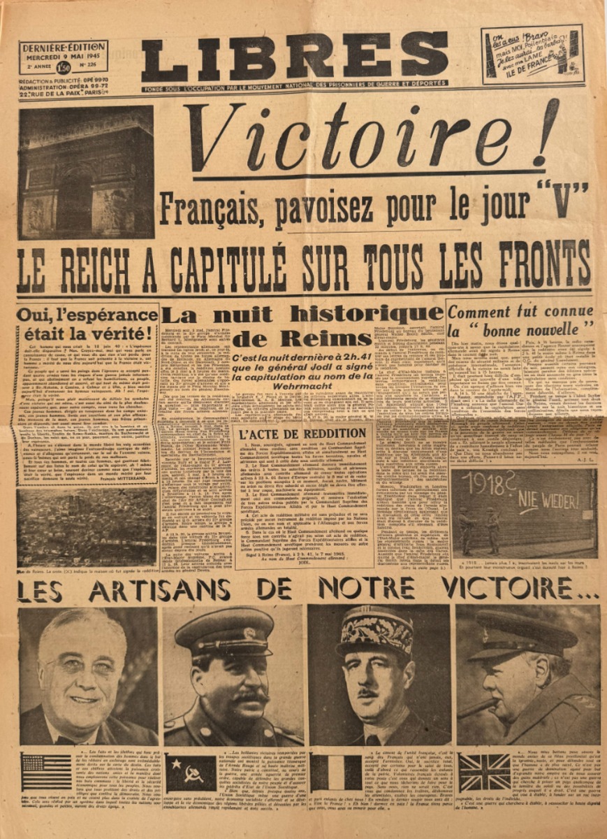 Journal Libres du 9 mai 1945 Victoire !! le Reich a capitulé - Fin de la 2eme guerre mondiale - WW2