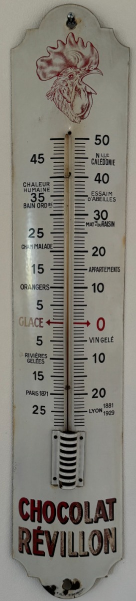 Thermomètre ancien bombé en tôle émaillée - Chocolat Révillon